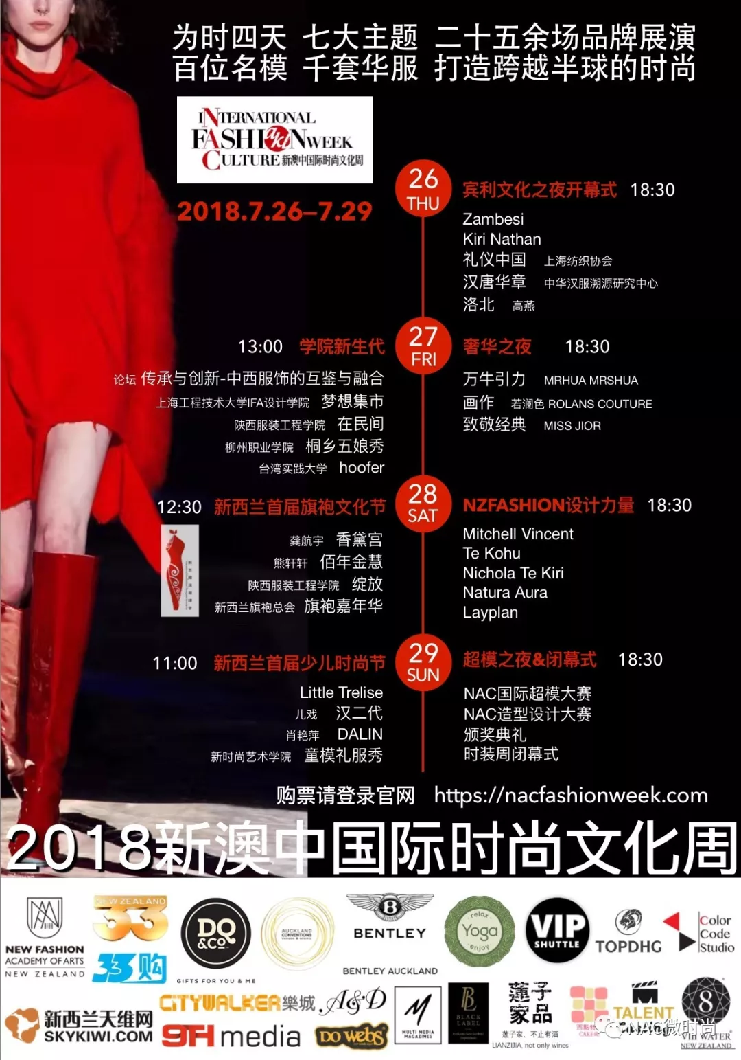 2018 新澳中时尚文化周将于2018年7月26日至29日,在新西兰奥克兰全面展开。文化周将集中呈现三个国家独特文化背景影响下各具特色的时装,被誉为“跨越半球的时尚”。三地时装展演项目,旨在挖掘和推广新西兰、澳洲、中国三地青年设计师及原创设计理念,为三地时尚领域孕育国际化先锋力量与新鲜血液。