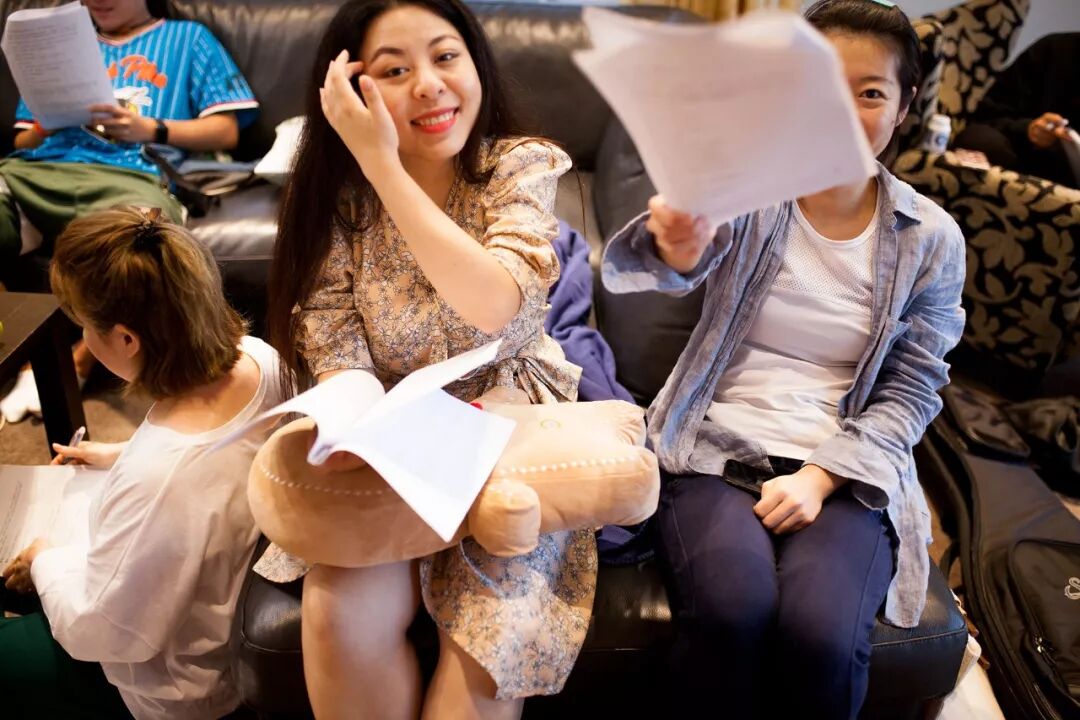 最大的困难应该还是在进入角色上。因为我平常比较迷糊,比较慢热,这个角色是眼明嘴快那种,跟其他人物关系又很微妙,一开始我内心也是进入不了角色。好在我们每次排练气氛都很好,大家会给你空间不断去试,哈哈。所以我慢慢从撒娇会笑场排练到现在已经比较顺畅啦。