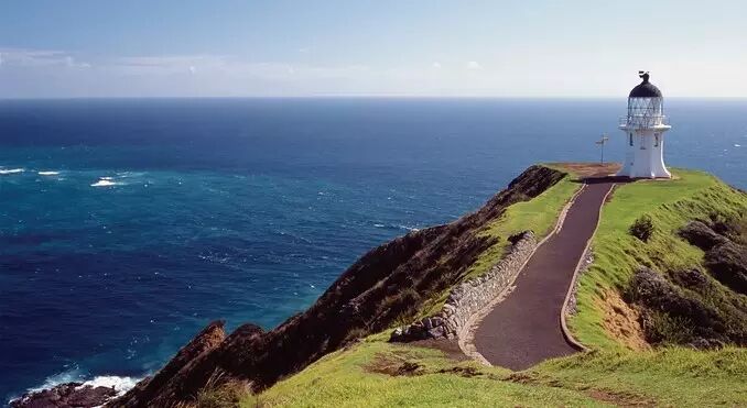 翌日清早,我们便启程继续向北行驶。途径寇里寇里,一个北地相当繁荣的小镇,到处都是葡萄园。依着手机地图的提示试图取道一号高速,却迷路进了条穿越茂密森林的碎石子路。高大的常绿植被,铺满远的近的山,偶尔冒出一片绿地,上面挤满了牛羊。我说,这山林真好隐居。简沉默不语,她喜欢城市生活,杳无人烟之地虽美景醉人,她却没有安全感。车慢悠悠颠簸了近一个小时,终于进入正轨。我们直奔雷因格海角而去。
