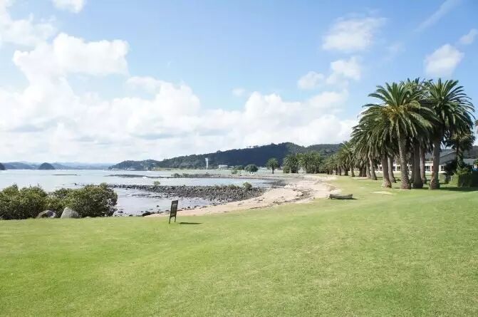 半路上下起了瓢泼大雨。但当我们到派希亚时,太阳已经攒出了重重云彩,天气甚至有点初夏的小热。这是个在纽西兰很多地方都可以看到的典型小镇,干净、设施完备,几步路外就是漂亮的沙滩,高大像伞一样的圣诞树,可以想见十一二月时的灿烂景象。隔着海湾往东是罗素岛。北边有座桥,连接着怀唐伊条约签订旧址。