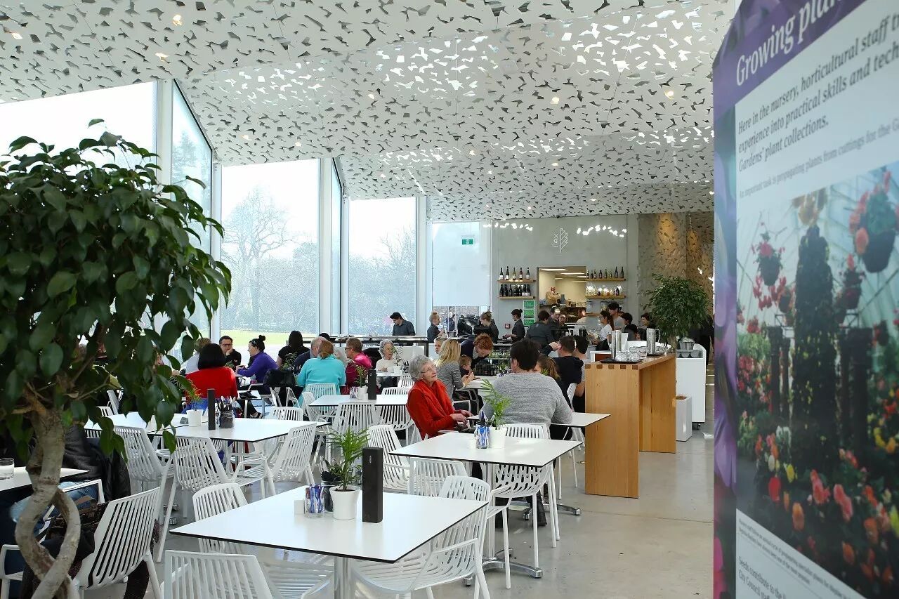 植物园游客中心位于植物园中央,人气很高的冬青咖啡厅(Ilex Cafe)即位于此。游客中心由建筑设计公司Patterson Associates设计,灵感源于英国伦敦的邱园(Kew Gardens),玻璃和白色钢筋结构, 外形轻盈现代。 游客中心于2014年4月威廉王子和凯特王妃访问基督城时剪彩落成。阳光明媚的午后,你可以在里面一边品味香浓的咖啡,一边欣赏暖房里的花花草草。