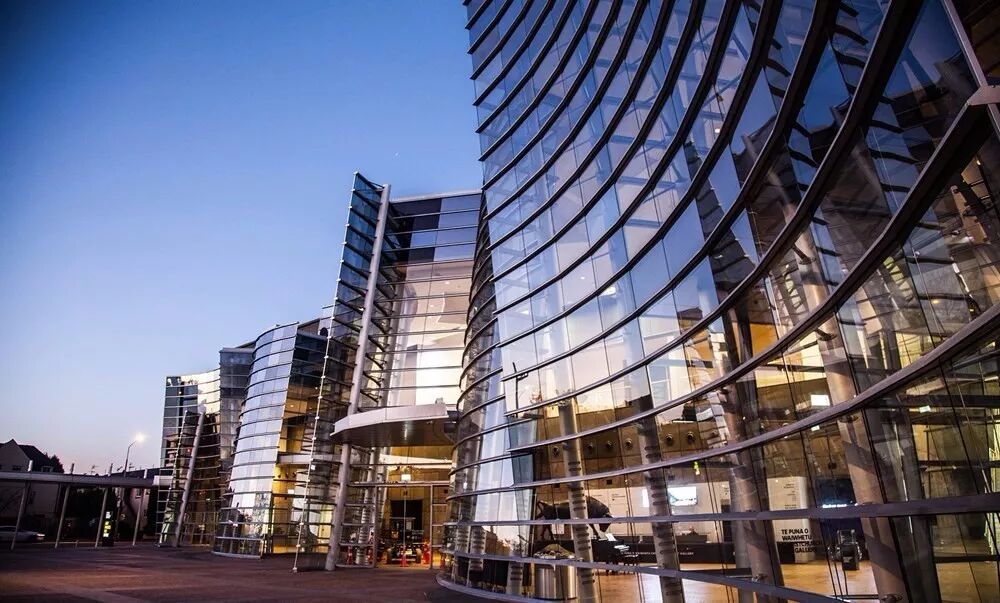 这一设计新颖的建筑由奥克兰的设计师以及一对日本建筑师夫妇共同设计。这一建筑原先在一处工地建造完成,然后一块块拆卸并转运至如今海格利公园( Hagley Park)的雅芳河边,再拼装组建而成。这一木结构建筑的屋顶为游乐场,上面有形似南阿尔卑斯山脉的台阶以及通往后院草坪的滑梯。