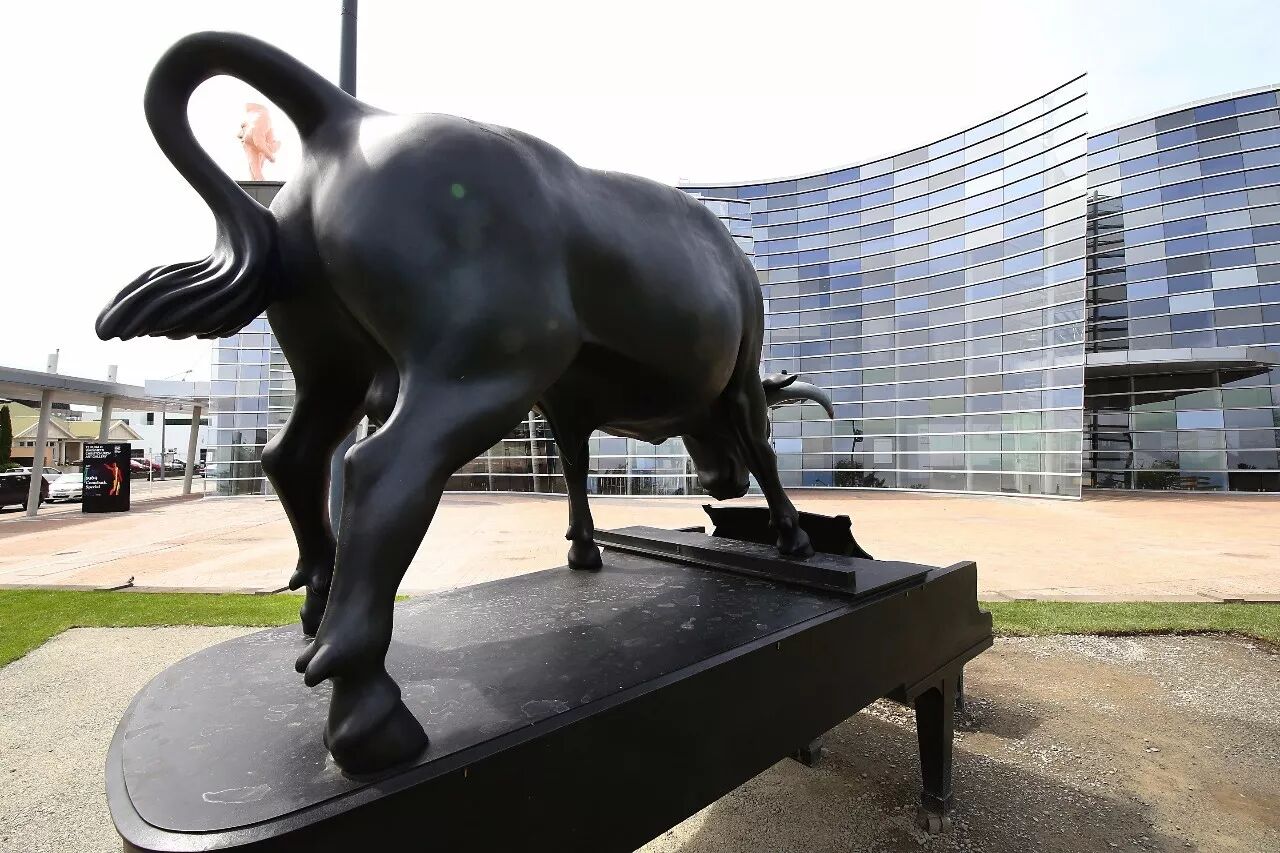 基督城艺术馆是新西兰最重要的艺术精品博物馆之一,里面定期更换展品,并举办各种特展和活动,是个常去常新的艺术殿堂。 参观艺术馆,一定要留意门口草坪上那个站在钢琴上的公牛雕塑,很难让人不想到一个中文成语。艺术馆屋顶上还有一个融合脸和手的雕塑(见上图),好坏自有评说,不过曾被评为世界十大最丑的雕塑,也是醉了。艺术馆正面系波浪形玻璃外墙,象征着弯曲的银蕨嫩叶以及蜿蜒曲折的雅芳河。