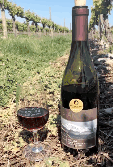 哦,对了,忘了告诉你,在这片黑品诺的园子里,每天抬头可见的就是马尔堡的最高峰(名字就不说了,太长,说了你也记不住?)终年积雪。这酒标上的图,就是最高峰的样子,也是Steve亲自拍摄的。