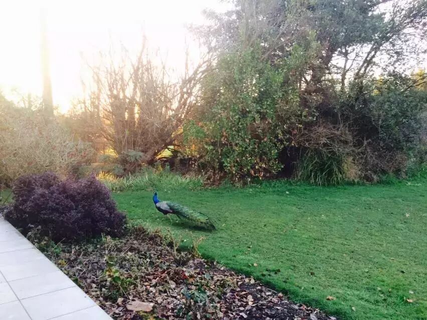 琦芳家的院子,春天他们就坐在樱花树下野餐玩耍。各种各样的野生动物也不请自来,比如这只孔雀。哎,新西兰的小动物也不怕人的,最夸张的是,你去湖边看风景,吃点面包啥的,野鸭子就聚在你脚下,一直盯着你。。一直盯着你。。手上的面包看。。赶都赶不走。。。这哪好意思再继续吃下去啊。。
