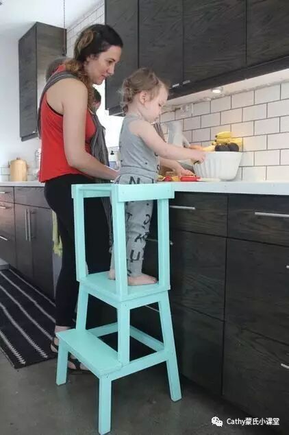 喜欢搬椅子看妈妈做事的小朋友,那就给他一个安全的板凳,收纳好桌上不需要的东西,分给孩子一些工作让孩子参与进来。