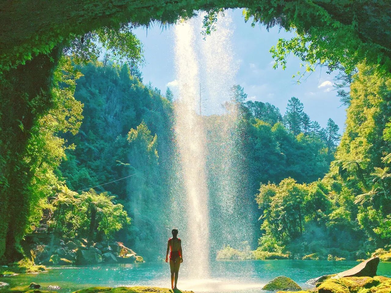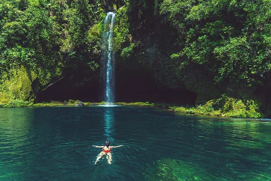 瀑布后有一个天然的洞穴,从对岸游到这里,仿佛进入了爱丽丝的奇幻世界。