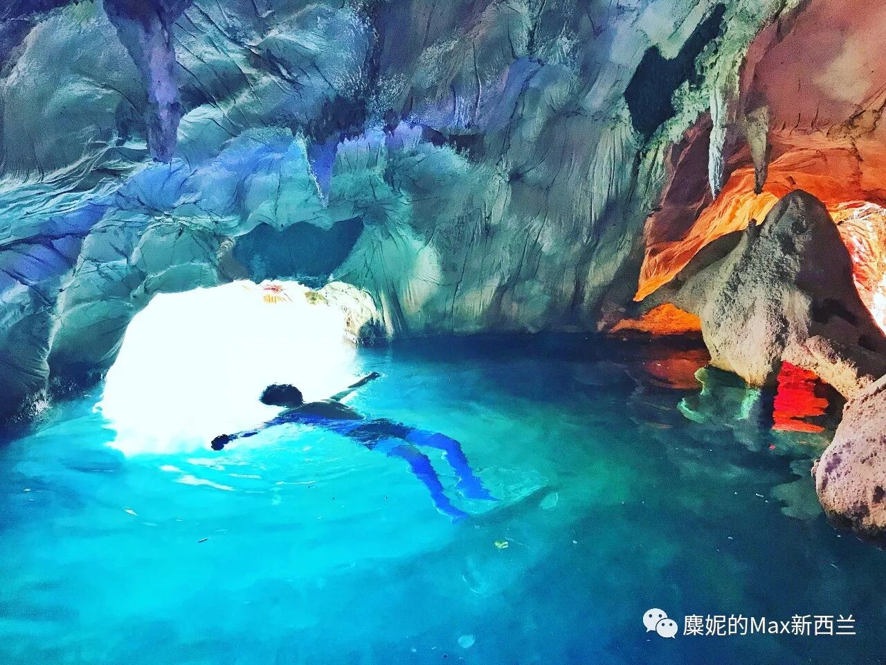 最棒的是,它居然还有个岩洞内的汤池,映着彩色的灯光,简直美呆了!