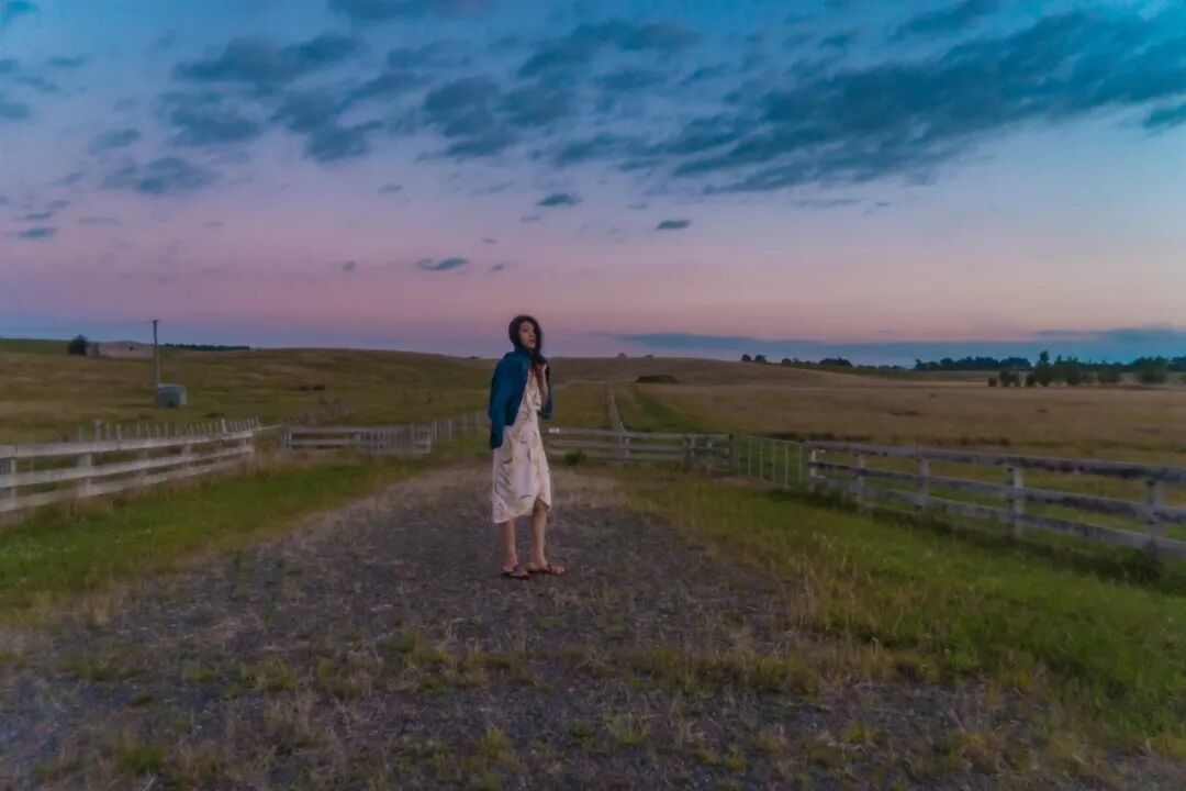 旁晚时分,披件外套散步到农场外的公路上,晚霞把小羊都染成了粉色的。