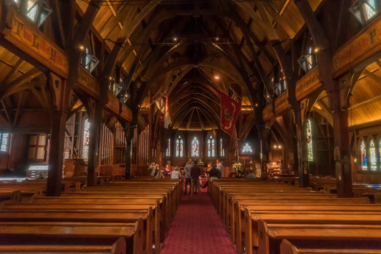 教堂内全木质的结构,一桩一梁都写满了故事。站在教堂的中央,只觉得被眼前这座艺术品惊得说不出话来。