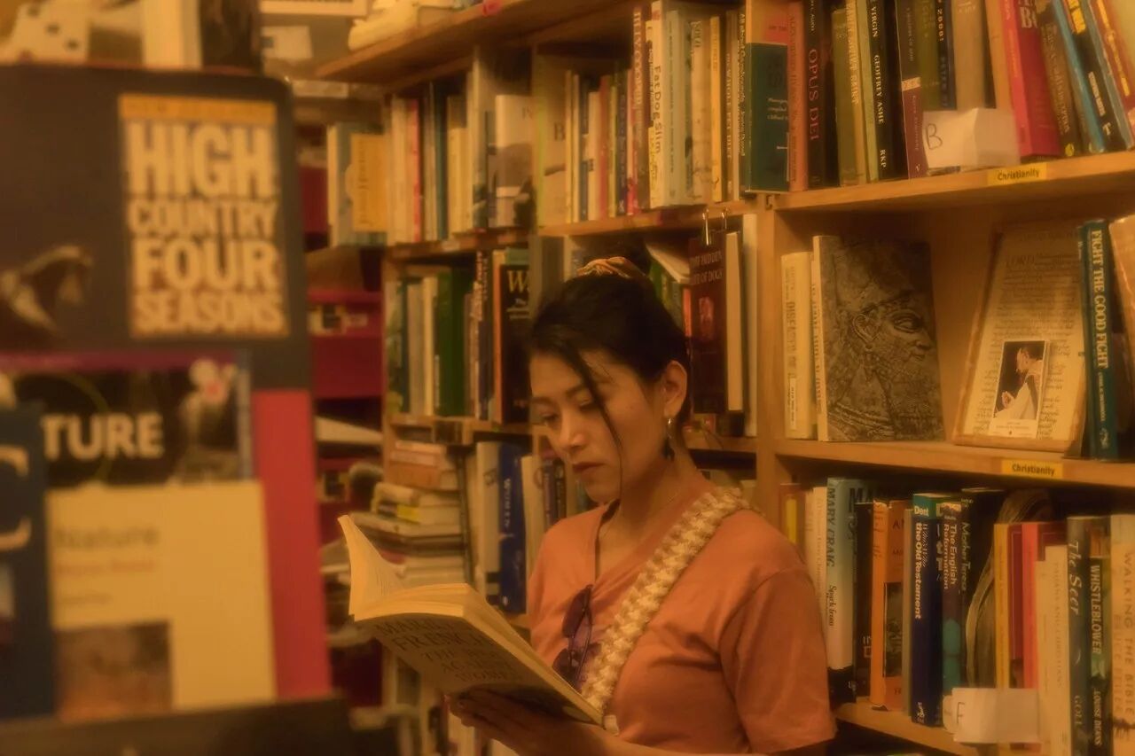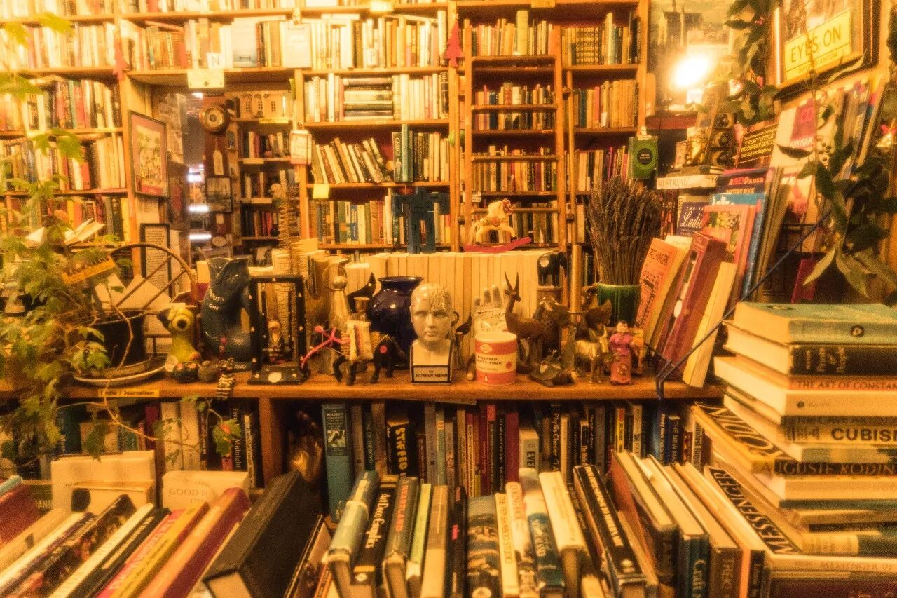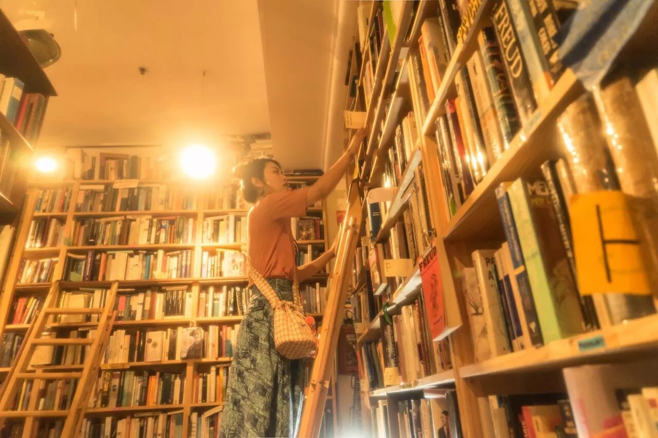 书店里的每个角落都塞满了书,看起来乱乱的,却又井然有序。想拿到上面的书,需要爬梯子才能取到,真希望能一辈子都住在这样的书店里。