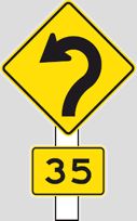 建议转弯速度标识:您在过弯时保持该速度,将会获得最安全舒适的驾车体验;此类型标牌通常以5结尾,从15千米/小时开始设置,根据道路弯度和路况,每个弯道速度不等。