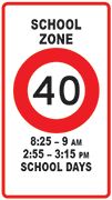 学校校区限速标识:在学校上学或者放学时间段内,您驾车经过学校校区的时候必须将速度降为40公里/小时;