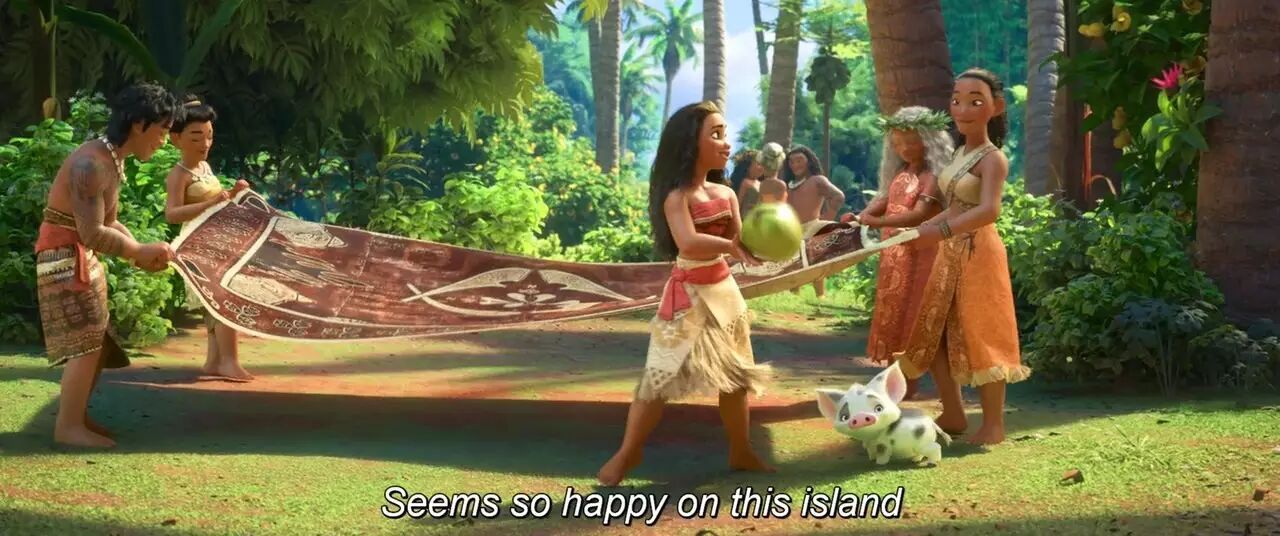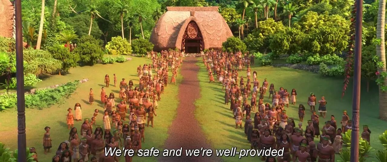 然后,整个部落的人就开始载歌载舞教育Moana: