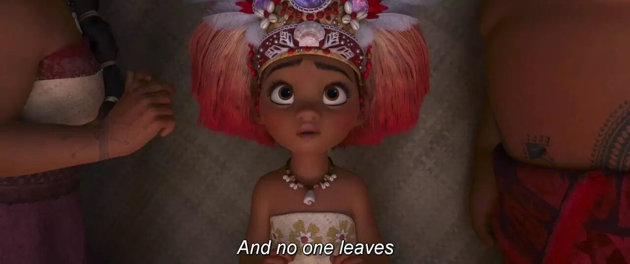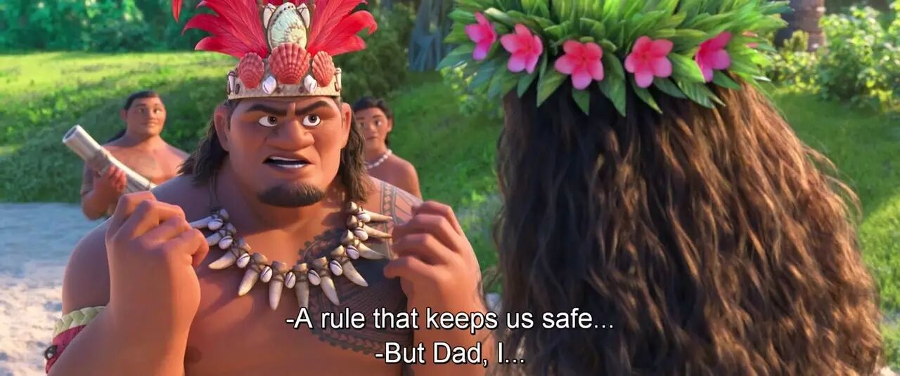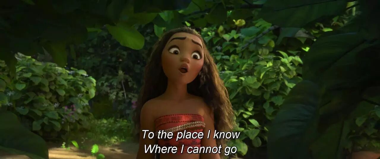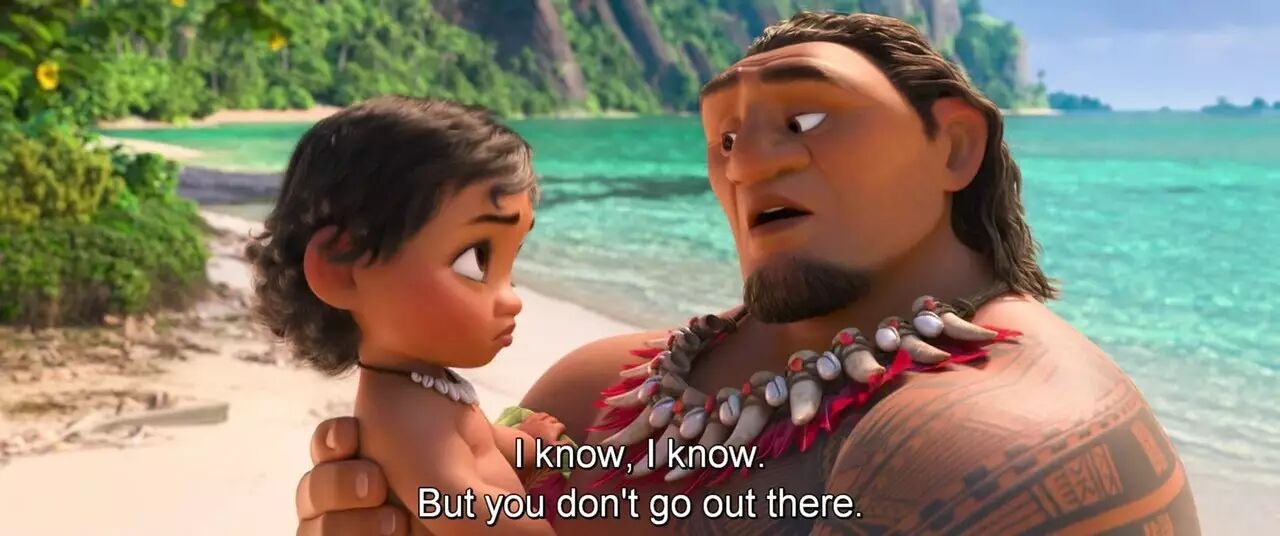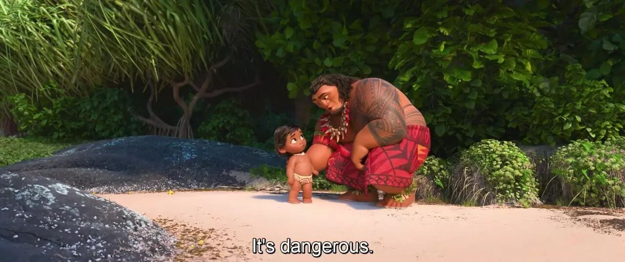 Moana小时候第一次去海边玩耍,就马上被酋长父亲揪了回来。她爹是这样跟女儿说的: