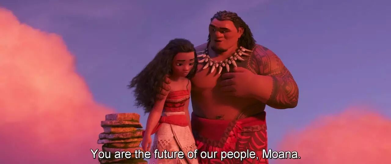 Moana长大一点,她爹又开始对她语重心长地单独教育: