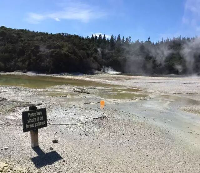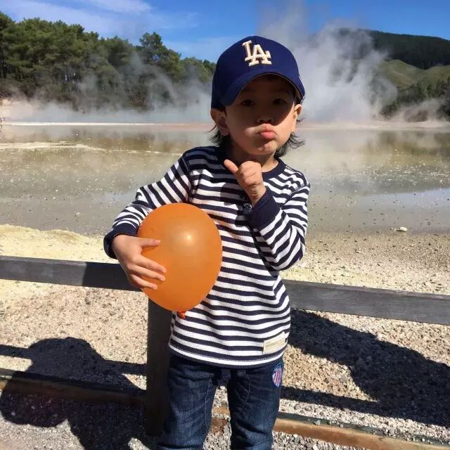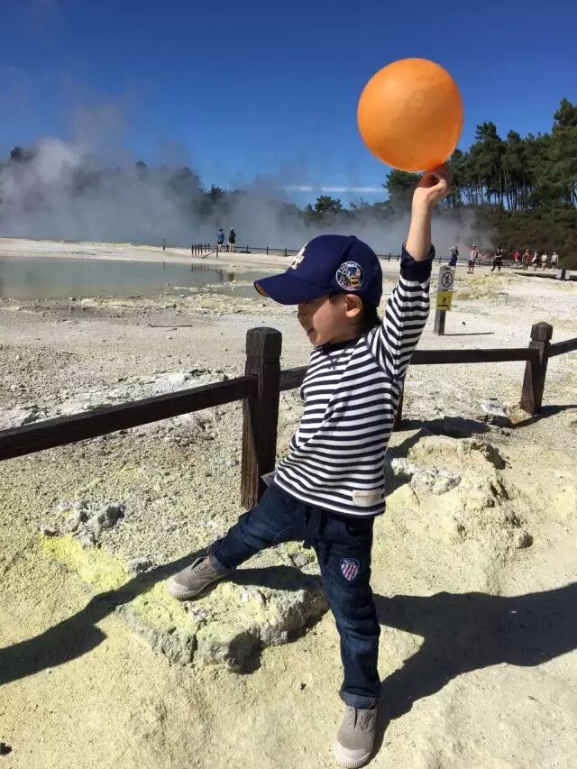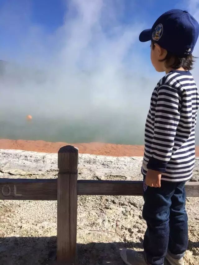 在新西兰的旅行,总免不了较长时间的步行,才能走入绝美的风景里。但爱吉也会考虑孩子的体力,安排合适的游览时间。在地热公园,走走停停一个半小时左右的玩耍,因为多为平地,连年龄最小的孩子也都基本自己走完了全程,真是棒棒哒!Derek更是收获了一次失而复得的小确幸~