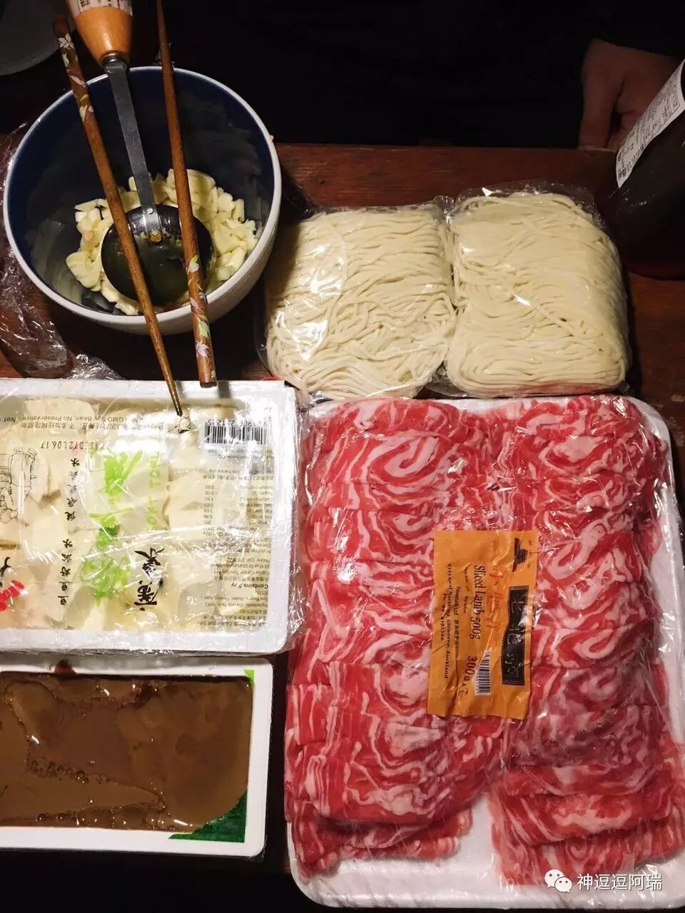 软件:底料包,矿泉水,羊肉,牛肉,鸭血,木耳,土豆,菠菜(太贵没买),青菜,蘸酱(蒜泥,麻油),梅林午餐肉(忘记买了,有牛羊肉就不吃午餐肉了,清真一些),嫩豆腐,豆腐皮(忘记买了),冬笋,无酒精啤酒(太贵不打折,买了王老吉)