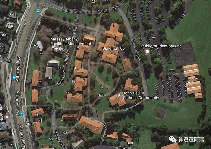 奥克兰梅西大学地处北岸,四号门校区距奥克兰市中心21.2千米,建筑约六十余栋,以一层平房为主,是奥克兰梅西大学负责语言,预科,幼教,生物,化学,营养,运动,工程等专业的教学楼及实验室所在地,晚上人数较少。主校区距离四号门 2.4 公里,建筑密度高,空旷区域少,人口流动性大,且有酒吧(话说回来为什么你们能在学校喝酒,我不能吃火锅?),较为吵闹,不做考虑。