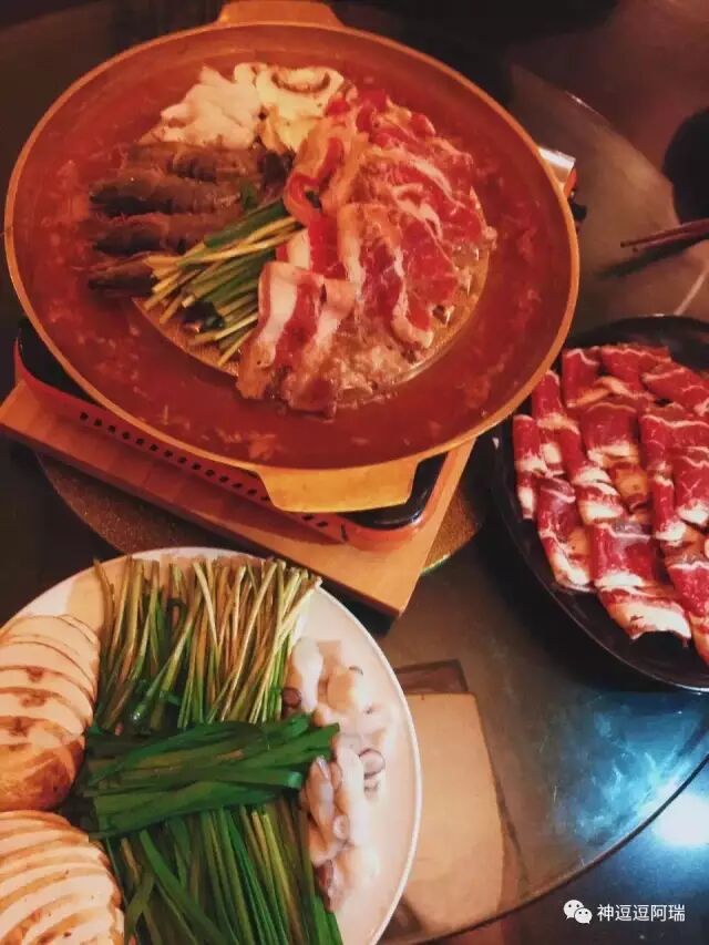 肉类选择以牛羊肉为主,冻虾限量,取完为止,最近一次去看发现牛肉质量好了不少,肥瘦二八开。羊肉大多是冻的,容易切片,刨下一盘自己去取一盘,另外有鱼肉、鱿鱼须、丸子和时令蔬菜各多种。每次周末去吃,如猛虎下山,饭店五点半开门,我们五点一刻就占好位置便于发挥。以凉菜热身,从六点吃到十点,边上能翻四五桌,我们却依然坚守阵地,快打烊时就剩我们这一桌了。还好老板人好,从不赶我们走,自己坐在一边安安静静的玩手机。