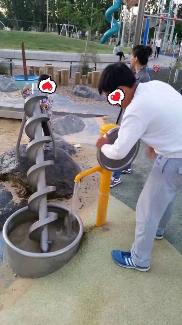 像这一类的设施通常都特别受欢迎,会“人满为患”。但所有人都会自觉的排队。无论何时,从不需要专人维护秩序。有的小孩稍微不注意,家长都会提醒。