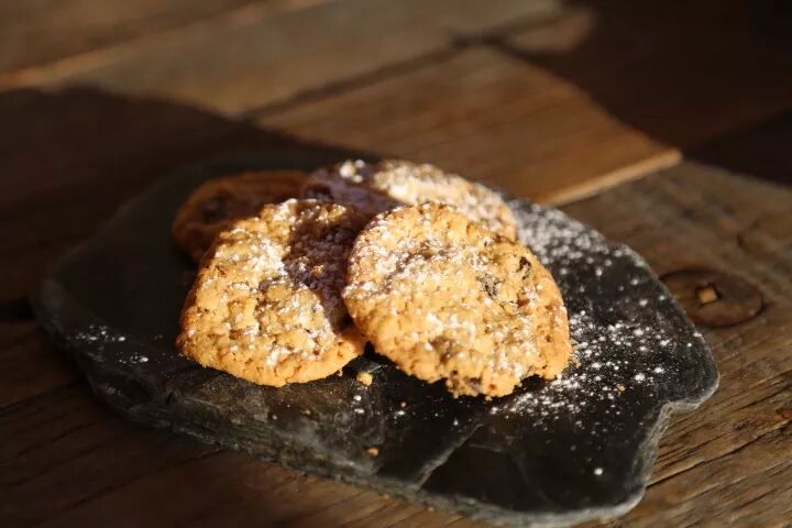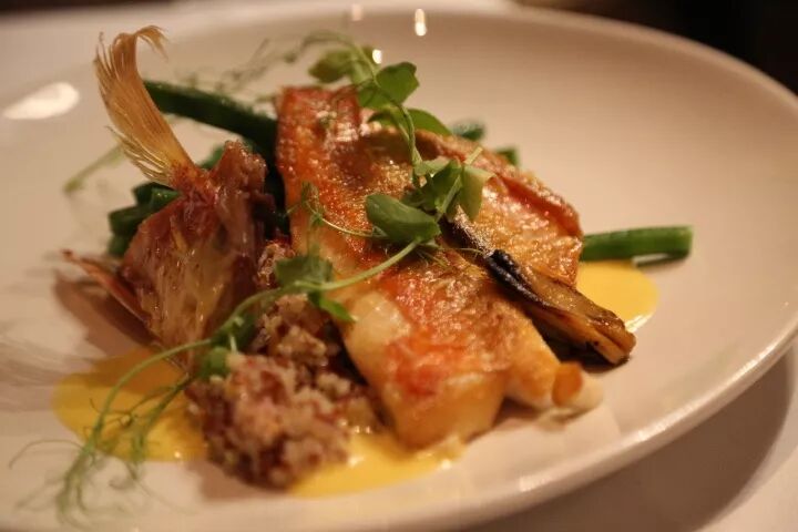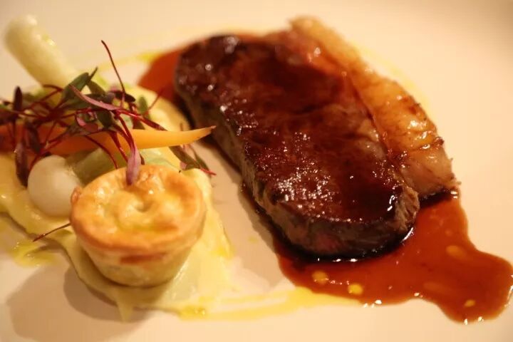 当日的主菜同样是两道选择,新西兰本地产熟成的西冷牛排,迷你炖牛脸肉派,袖珍蔬菜,土豆泥,红酒酱汁。三成熟的牛排火候恰好,肉汁丰盈留着咬劲,牛排的油脂与红酒汁包裹一起,入口的回味多了几分野性,在秋冬季节正是不折不扣的治愈系美味;相比之下,香煎鲷鱼则清新许多,产自北岛小镇Leigh的鲷鱼鱼皮香脆,幼白肉质口感亦十分紧实,伴碟的荷兰汁色彩明艳,瞬间提升了整个菜品的赏心悦目程度,又不会抢走鱼肉本身的新鲜滋味。来自南岛最南端布拉夫小镇的绿唇贻贝更是带来大海的鲜美,与鱼肉配搭起来别有生趣。当然更有意思的是藜麦塔布勒沙拉(Tabbouleh 塔布勒沙拉是中东地区的一种沙拉,起源于黎巴嫩、叙利亚一带。主要由干小麦碎与切碎的香芹、薄荷、番茄及洋葱等混合,并适量加入盐、柠檬汁、橄榄油等搅拌而成)带来几分清新的酸味,与配菜绿扁豆一起平衡了酱汁的馥郁之感,收尾干净圆满。