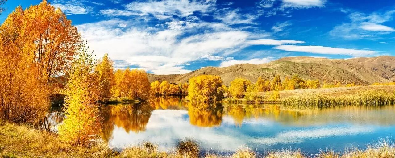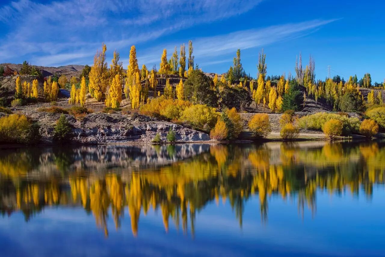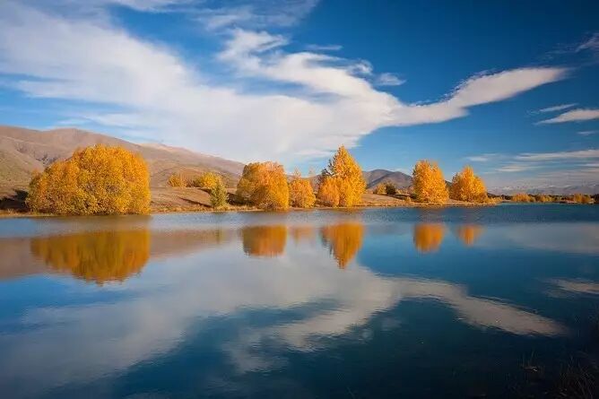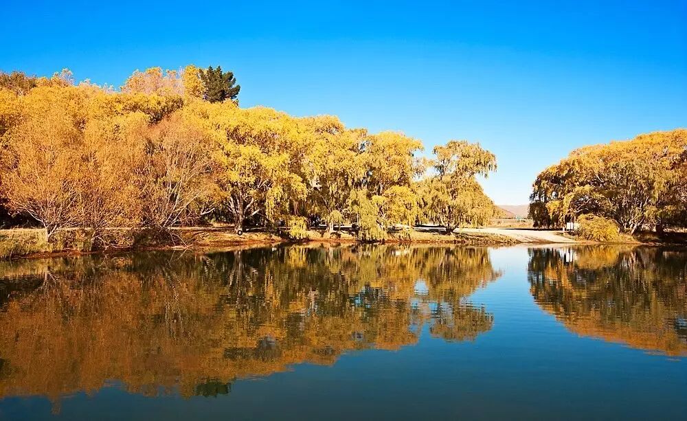 明黄色的乔木围绕着蔚蓝深湖,鲜明的色彩对比正是属于秋日的写意画面,尤以本莫湖-Lake Benmore与艾维莫湖-LakeAviemore为盛。围绕这两处湖泊都有环形步道带你沉浸于湖泊四周的秋日景致中。