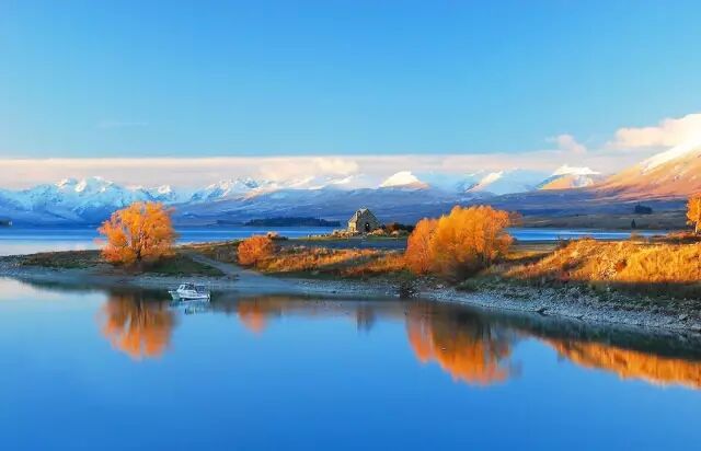 从观星小镇特卡波-Tekapo到牛奶蓝湖普卡基湖,一直延伸到更远处的特威泽尔小镇与奥玛拉玛小镇,是拜访新西兰秋景的绝好去处。