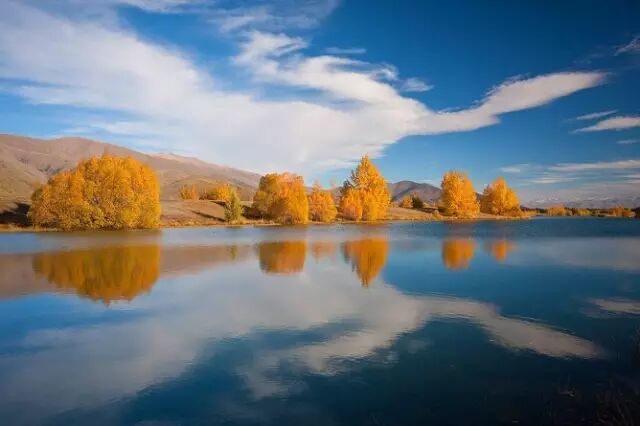 秋日的特卡波小镇有数个湖泊四周被耀眼的金黄树木所点缀,当然最为明显的是特卡波湖本身。距离8号公路很短车程的亚历山大湖-LakeAlexandreina和麦格雷戈湖-Lake Mcgregor更为隐秘不过却可以发掘出更多的金黄色泽。