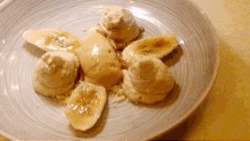 【解构版Banoffee:香蕉奶酪蛋糕、姜汁烤酥饼碎、焦糖冰淇淋】
