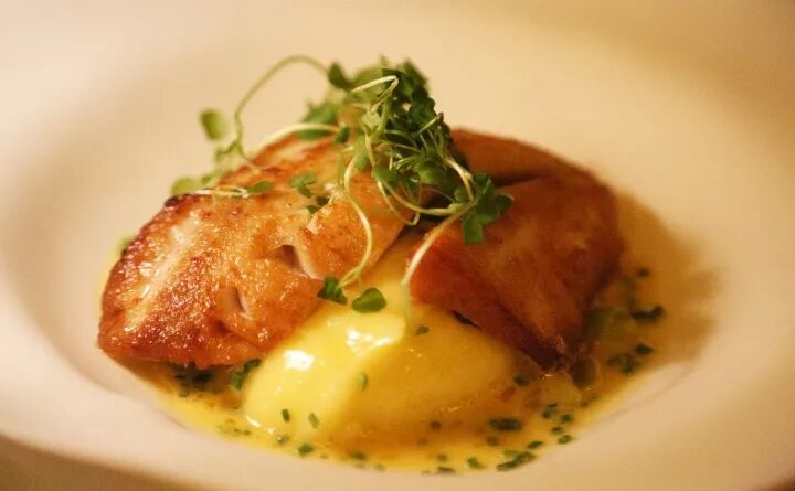 【煎龙尖鱼 Tarakihi、奶油土豆泥、香葱、白酱】