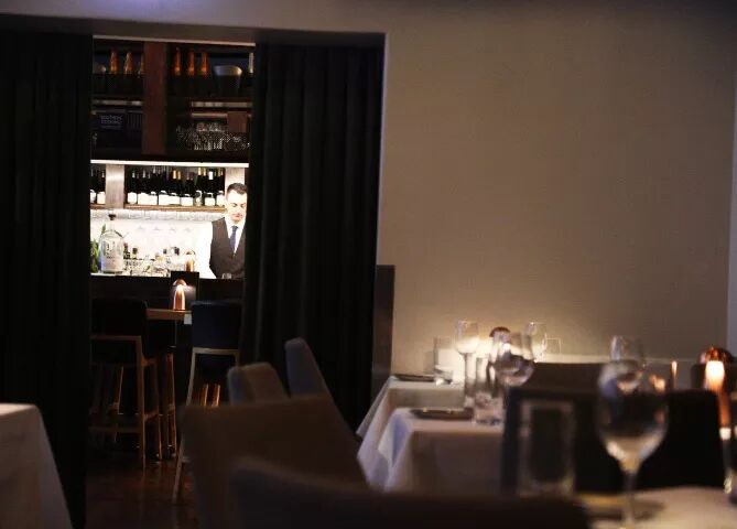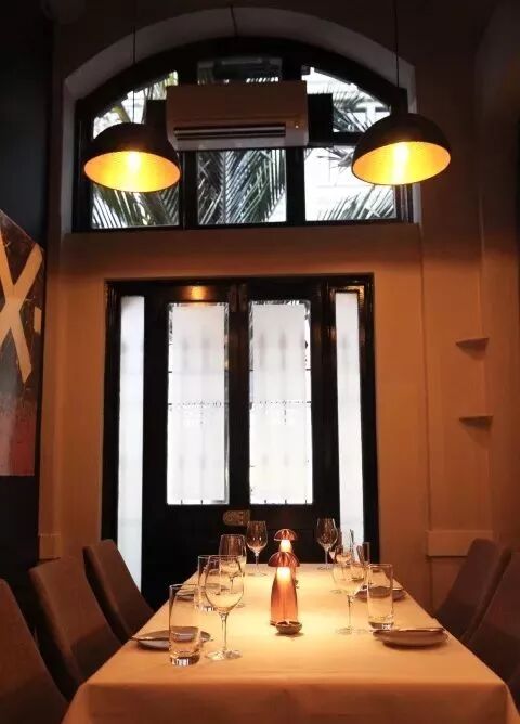 一进门的酒吧只有三张高脚桌,适合餐前的开胃酒时间。