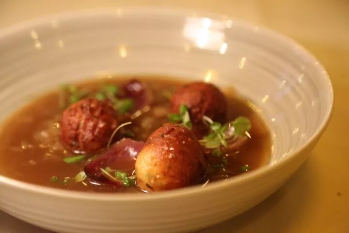 【法式洋葱汤、陈年车达奶酪贝涅饼Beignet】