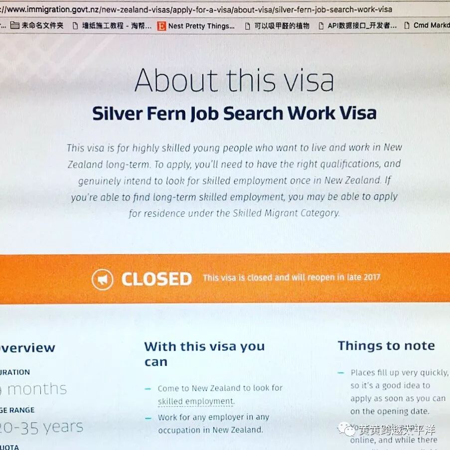 新西兰银蕨签证政策是新西兰移民局从2010年起推出的一个新政策,根据这项政策的扶持,持有银蕨签证入境的申请人,在顺利找到技术性工作(即移民局公布的六百多个可移民职业之一)并工作了一段时间后,就可以直接获得新西兰的居留权。总结来说就是:拿到银蕨签证的童鞋有一年(实际上是九个月)的时间在新西兰找工作,一旦与雇主签订工作合同,就可以顺利申请到新西兰的居留权。