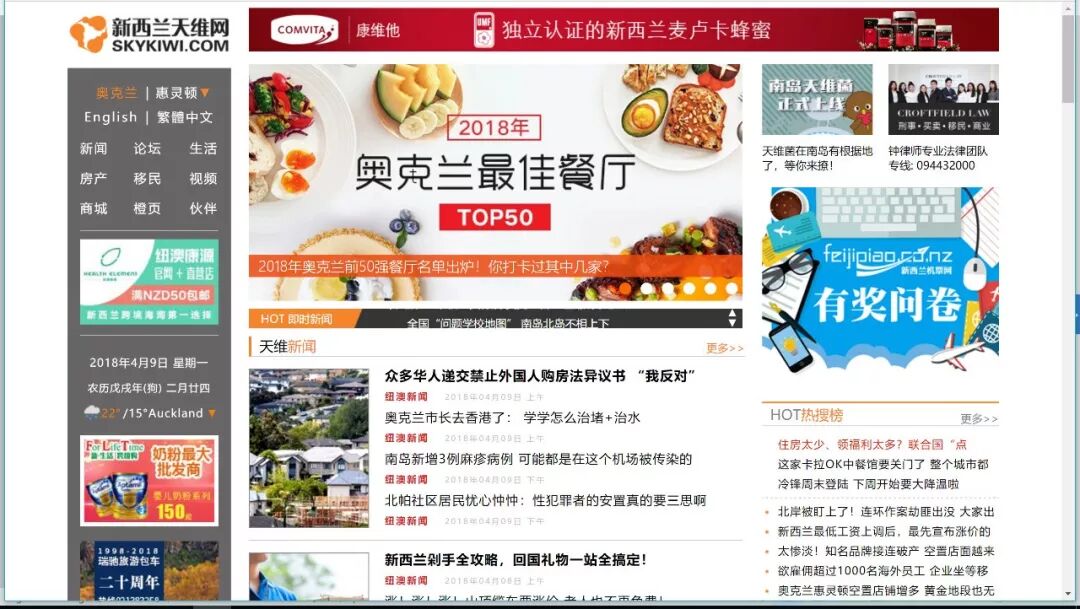 天维网是新西兰最大的华人论坛,里面有房产、二手、求职招聘等各种各样的信息,绝对是居家旅行必备(他们肯定没给我广告费,我只是他们的合作作家而已,哈哈)。