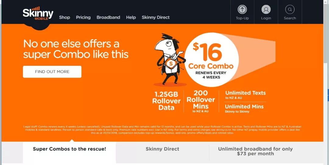 跟中国一样,新西兰也有几个相互竞争的电信寡头:Spark,vodafone,2degrees和skinny。Spark原身就是新西兰电信,以前主要做固话、基建业务,后来也随大流干起了手机、网络的买卖。Vodafone是新西兰手机业务的领头羊,机场一出来你就能看到他们家的专柜,实力强劲。2degrees应该是在两大巨头的夹缝中求生存吧,最早开始推出低价套餐(于是Spark和Vodafone也相应降价)。而Skinny其实就是Spark的子公司,走平民路线,其基站、网络都是用的Spark的,算是站在了巨人的肩膀上。