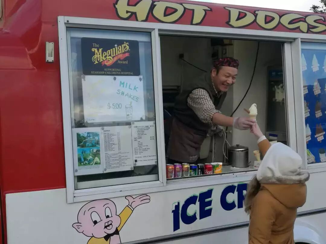 忙完这波客人,重新归于平静。看到我在看照片,他主动介绍,那是他的儿子。照片是好几年前拍的,那个时候他刚接手这个雪糕车生意。看得出来儿子是他的骄傲,因为儿子曾是新西兰的乒乓球冠军,他到新西兰各地去基本也都是过去陪儿子打比赛时。