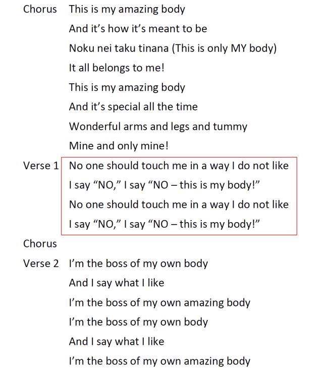 另外这节课也是要教会小朋友对自己的身体有掌控权。而这个信息通过一首儿歌来传递 “My Amazing Body"。