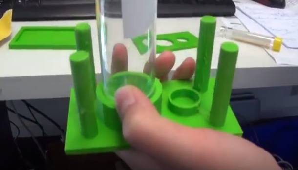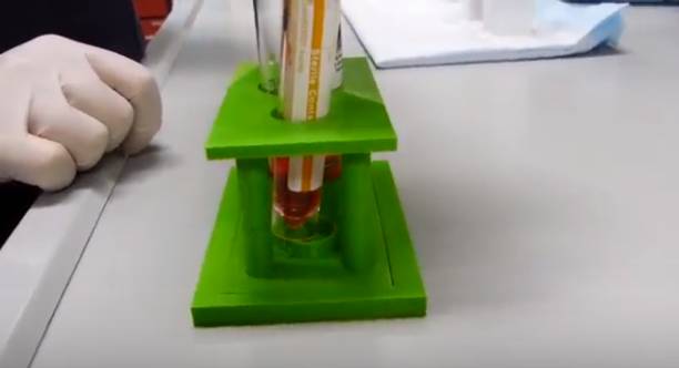 医生拿到了试管架在实验室进行测试,很多方面都很满意:例如表面平滑易于清洗;试管槽大小适中,快速取出和放入试管都很方便...优点之外,医生也从实用性方面提出了一些改进的方面:例如学生们很以为傲的底部设计,在实际情况中很有可能让试管架清洗变得很困难;医生在进行取样的过程中,需要能够看到试管中溶液量的变化,但目前的设计很难实现这一点。