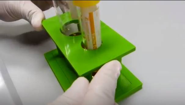 最后一次改进,学生将基座和试管架相连,对小试管的底槽也做了修改,解决了医生们的难题。