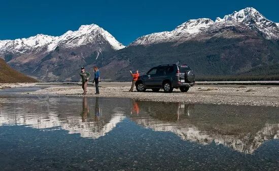 几个月之后的同一条路上, 助人者将两位准备从Rees River 出发到Dart River 结束,准备徒步多日的人送了一程。