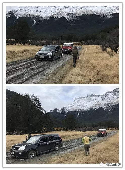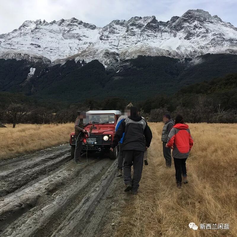幸运的是, 就在十米开外一部带着前绞盘的路虎上跳下来几个人:来自英格兰的丈夫和苏格兰的妻子及他们成年的孩子, 在皇后镇居住已5年, 来格林诺奇遛狗是他们每周做的家庭活动。