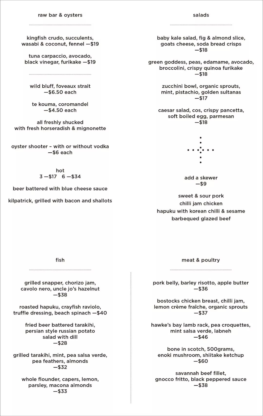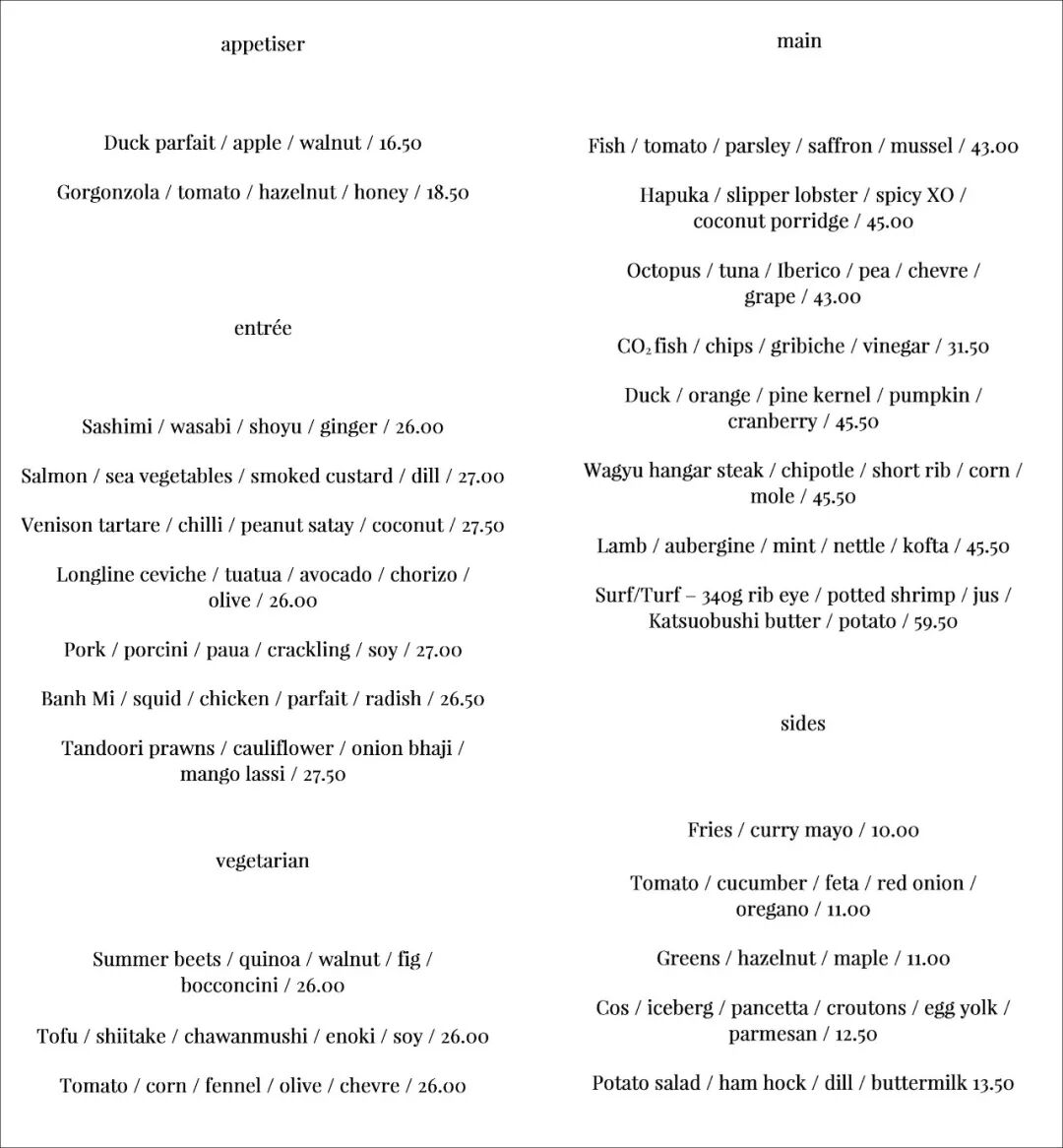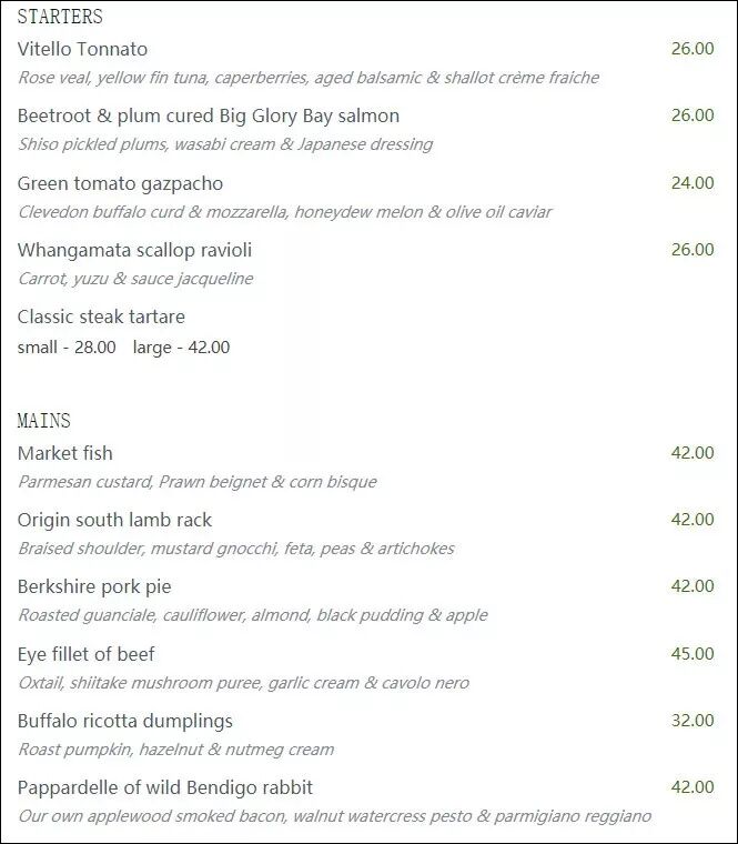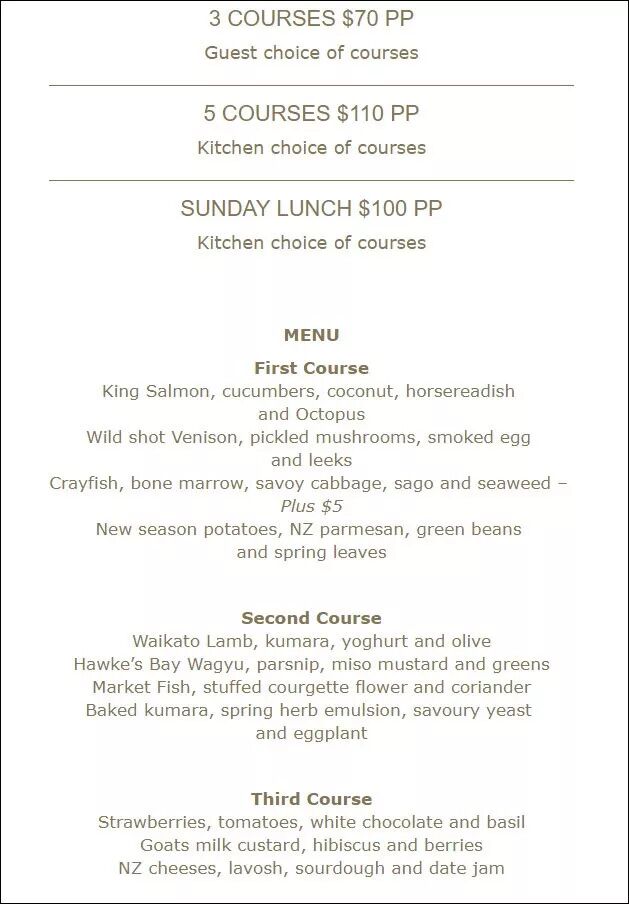 主营现代欧洲菜品,餐厅环境精致私密。在新西兰全国乃至国际上屡获大奖。它的服务水准是同行的标杆,菜品别出心裁,美味可口,而餐厅的酒单更堪称典范。
