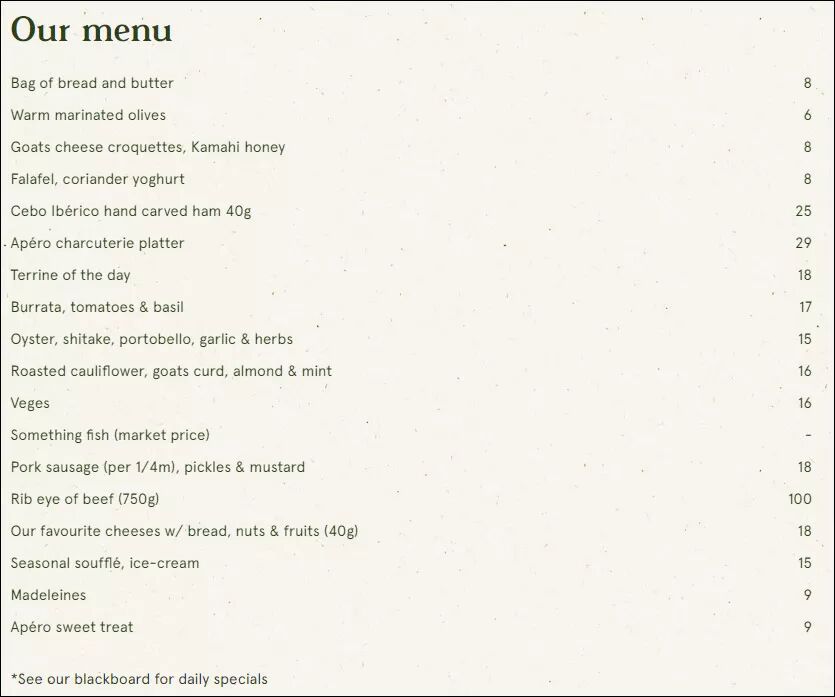 这里的菜品很粗旷,但不失美味,洋溢着传统的法国风情。