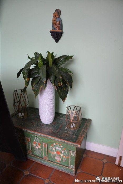 老箱子。看上面的圣母玛利亚和小耶稣的像,就知道餐馆的主人是天主教徒