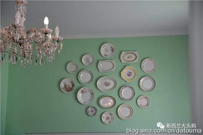 墙上挂着二手店里淘来的英国瓷器