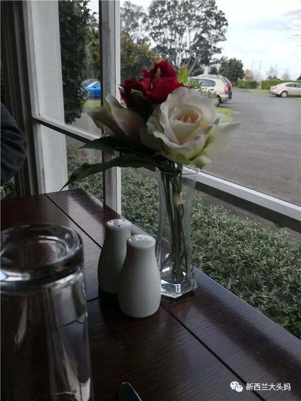 店员把我们引到靠窗户的桌子前面,这个位置是我们喜欢的。只是,桌子上的小瓶子里面依然是假花。