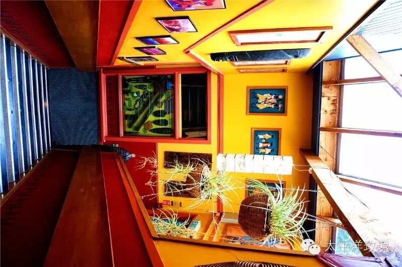 室内墙壁颜色依然艳丽,墙壁上布满各色装饰物。