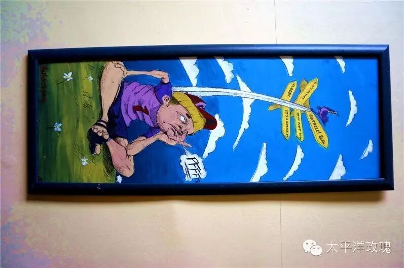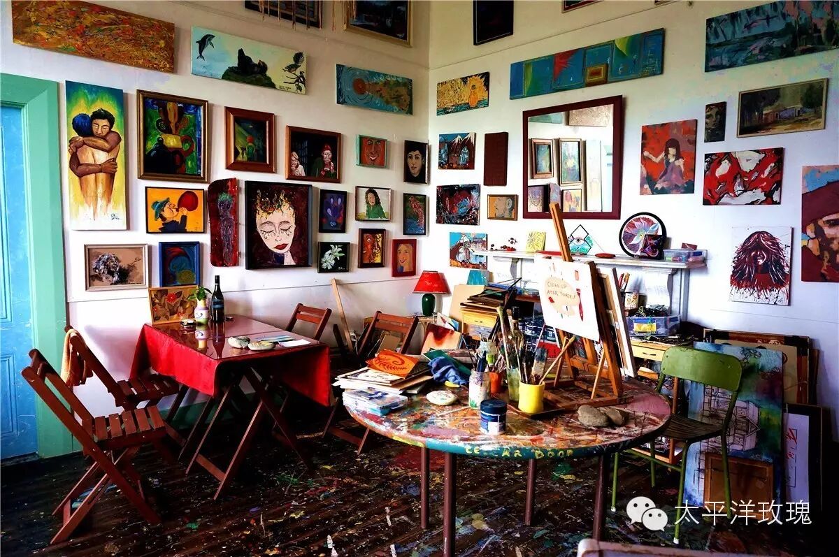(一)位于南岛奥玛鲁企鹅小镇的CHILL A WHILE旅馆,名字翻译为中文意为“冷却一下”。这家旅馆充满艺术气息,被称为“背包客的画廊”。毫无疑问,旅馆主人是位爱好美术的文艺青年。旅馆设有公共画室,提供绘画所需用品,客人们可以随意使用。主人还把较好的习作挂在墙上,既展示又装饰。虽然对绘画一无所知,我还是在作品墙的前面流连了好久,觉得这个创意既新奇又有趣。