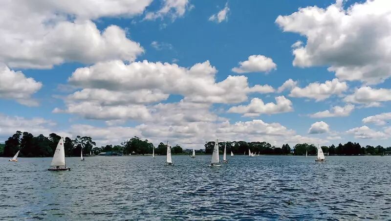 天气晴朗的时候,遇上风帆俱乐部有日常训练,点点白帆装点之下的汉密尔顿湖更美了。